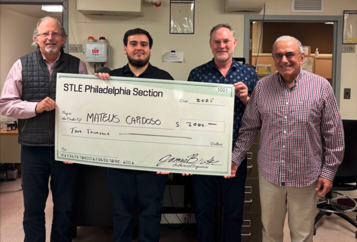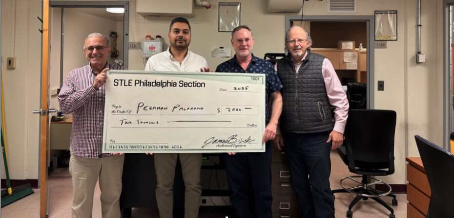 These scholarships not only celebrate Pezhman and Mateus’s achievements to date but also invest in the next phase of their work that could revolutionize how we think about lubrication and wear protection. As they move toward electric-field-tunable coatings and grease formulations optimized at the nanoscale, the STLE Philadelphia Section is honored to support research that will keep machines running longer, cleaner, and more efficiently.